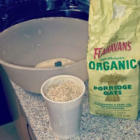 Ingredients:1 x large tub of Natural, Organic Yogurt (about 500g)2 x large tubs of Organic Oats (use the empty tub to measure - saves time and wash up)1 teaspoon of baking soda2 tablespoons of Coconut Oil/Olive Oil/Full Fat Butter2 heaped tablespoons of chia seeds2 heaped tablespoons of milled flax seeds(Option: replace some of the oats with more seeds to bulk it up, add more protein and more nutrients)